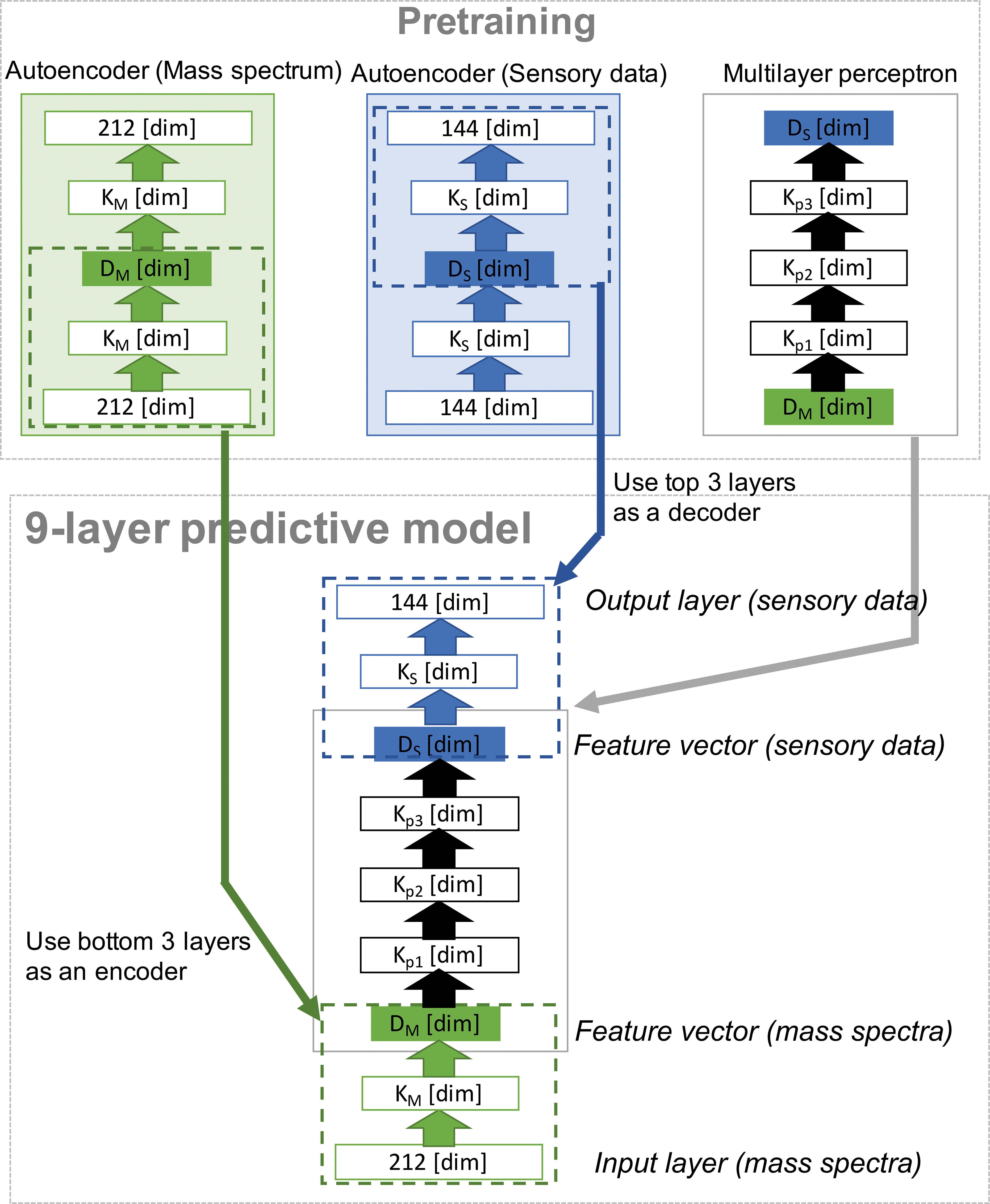 A 9 layer neural network as shown in fig. 2 using an auto-encoder was used for predicting the characteristic of target odorant. We use sensory evaluation data and mass spectra data by evaluating 160 odorants with 146 descriptors.